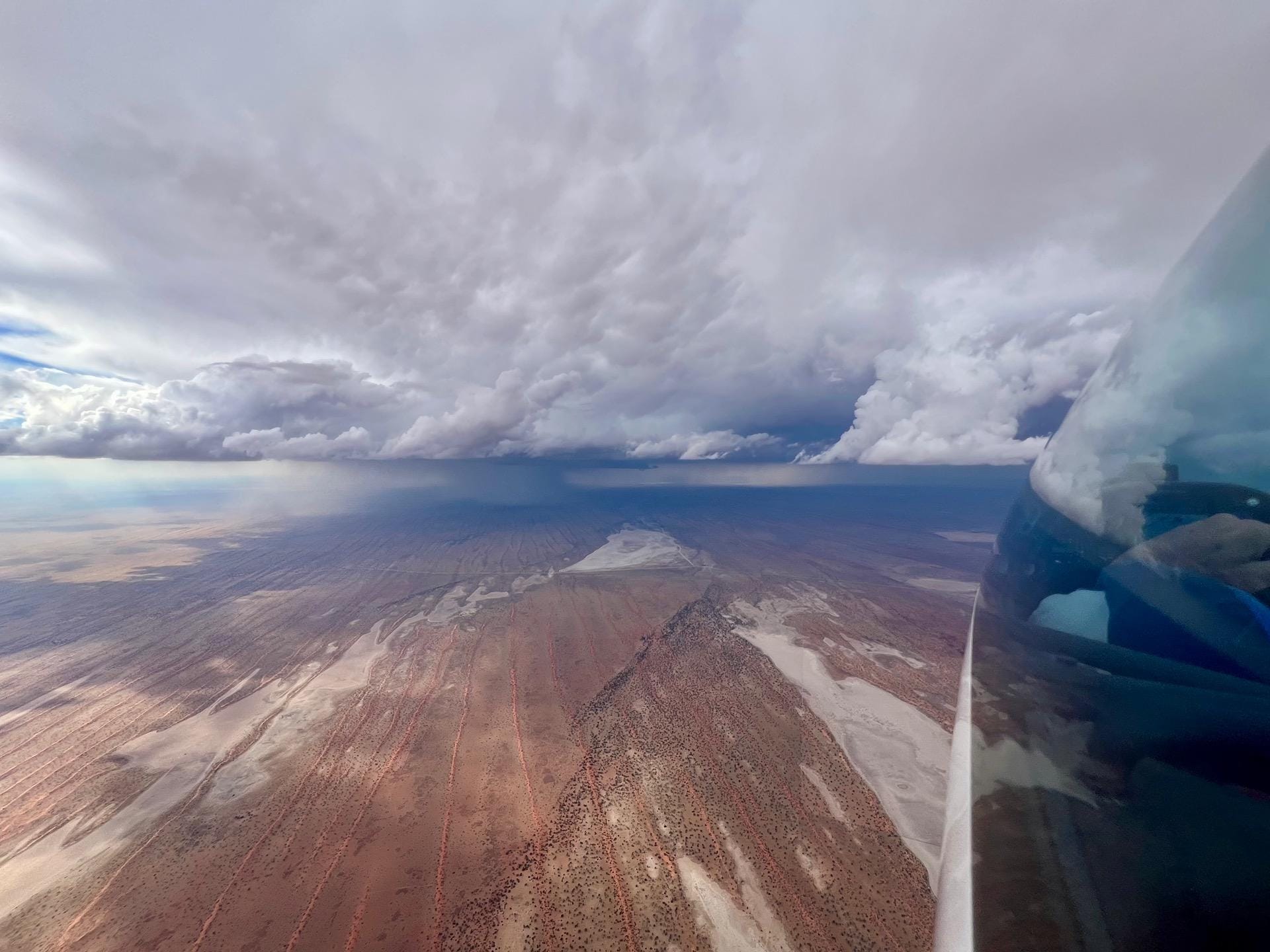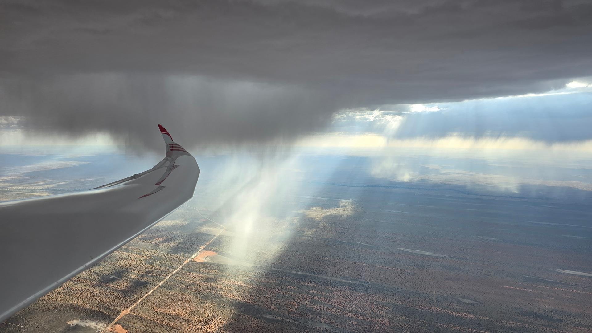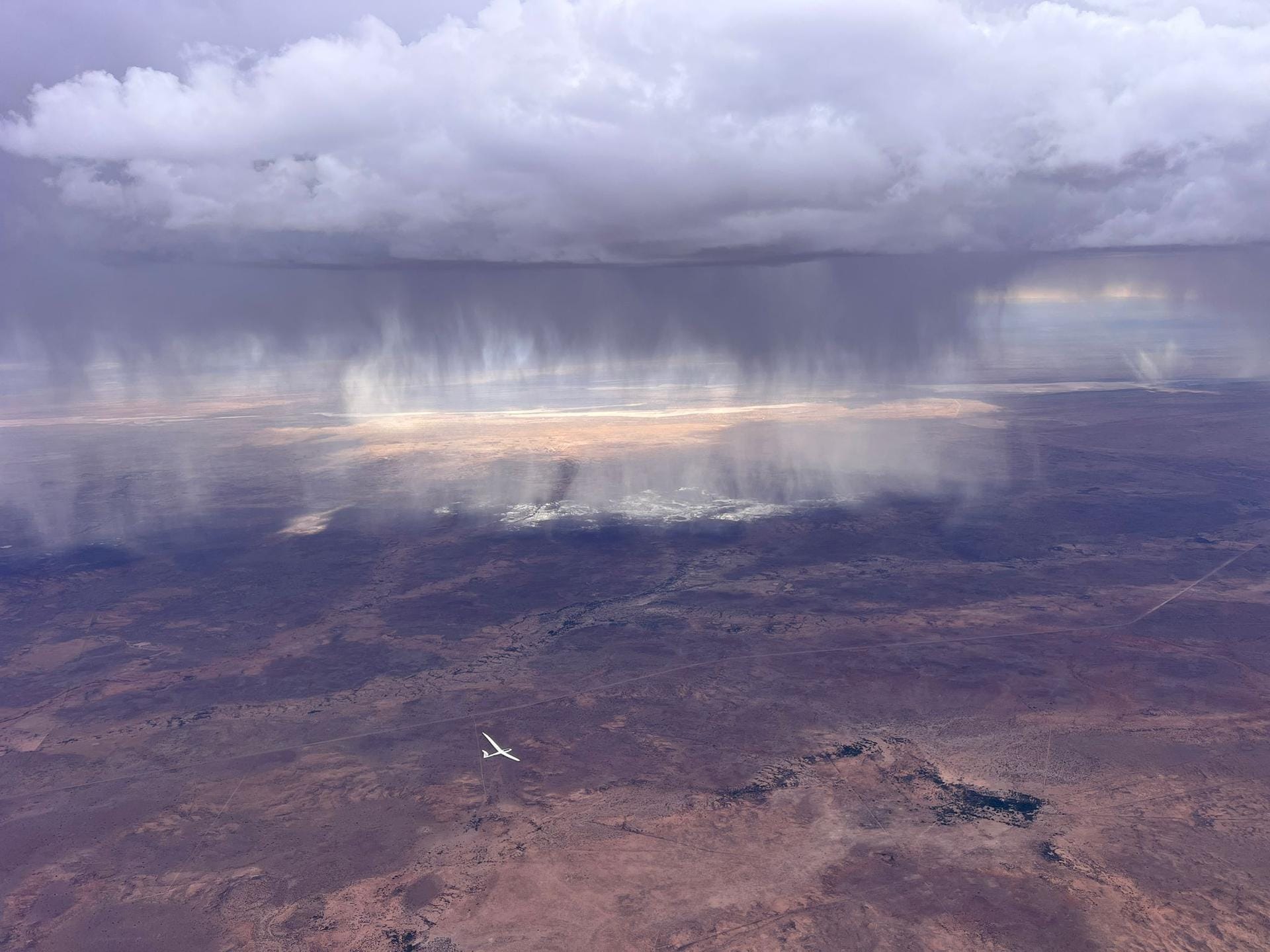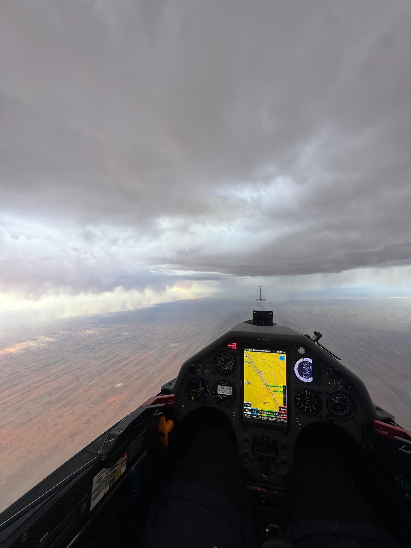 In the later afternoon, various showers and large areas of spread-out clouds made the situation somewhat confusing and required major course deviations. Fortunately, toward the evening, a very usable shower line formed directly over Bitterwasser, which made it possible to keep the speed high until sunset.