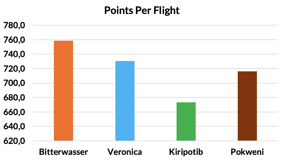 The points per flight are more evenly balanced: