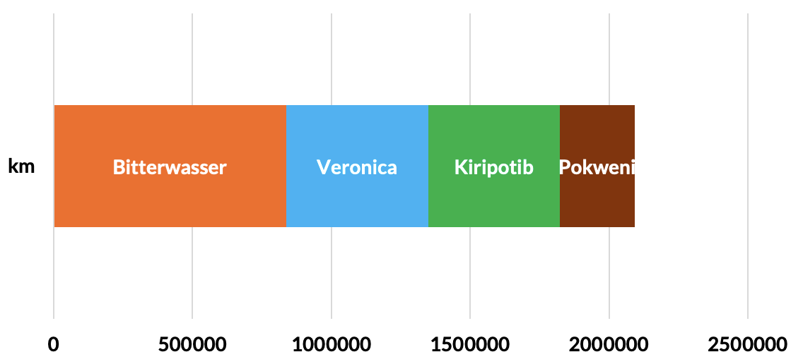 When we look at the distribution of flight kilometers across the four launch sites, we see the following picture: